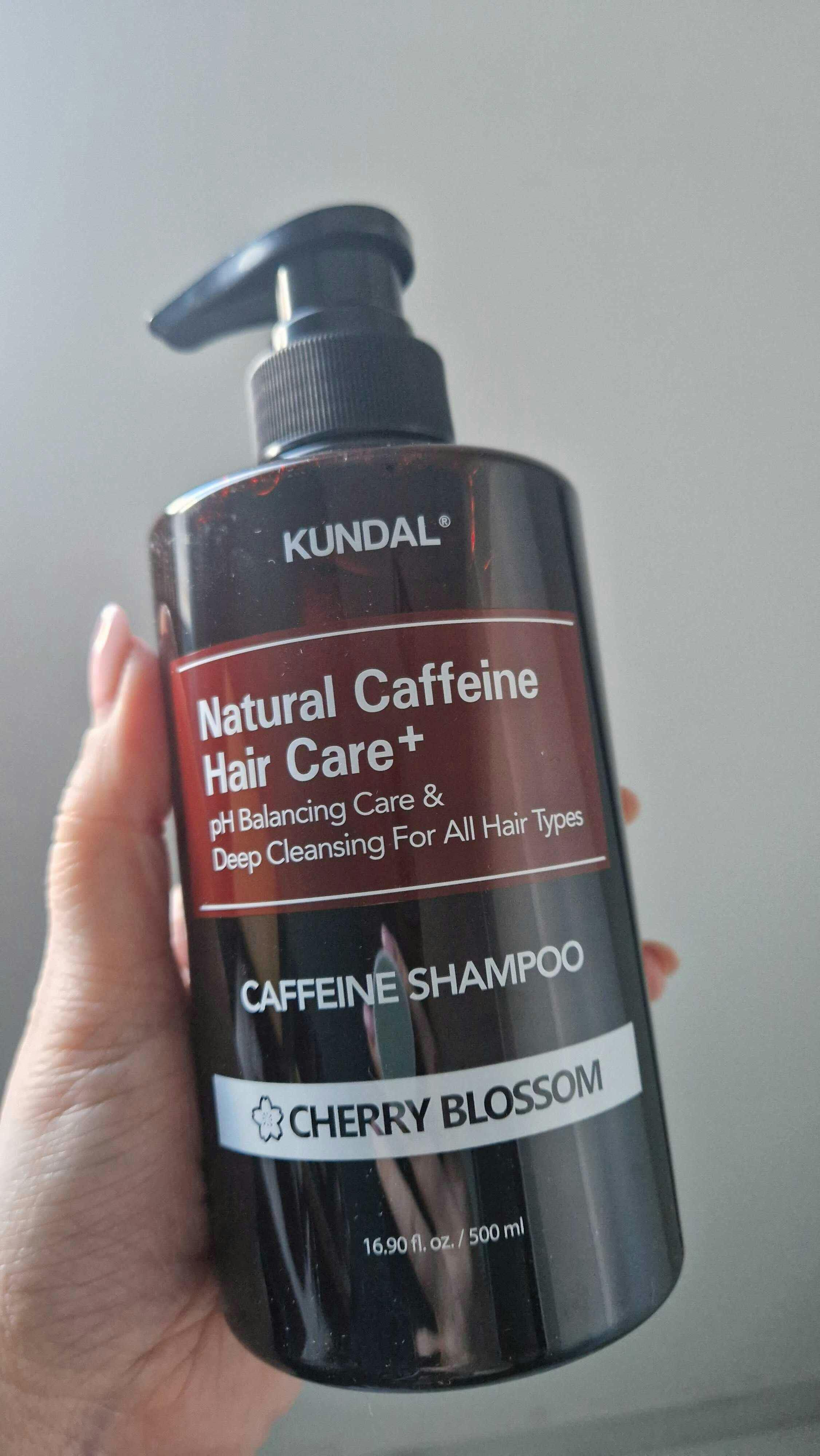 KUNDAL Caffeine Shampoo enhances scalp health and hair elasticity, and helps reduce hair loss. It also soothes irritation, and encourages scalp moisture balance.