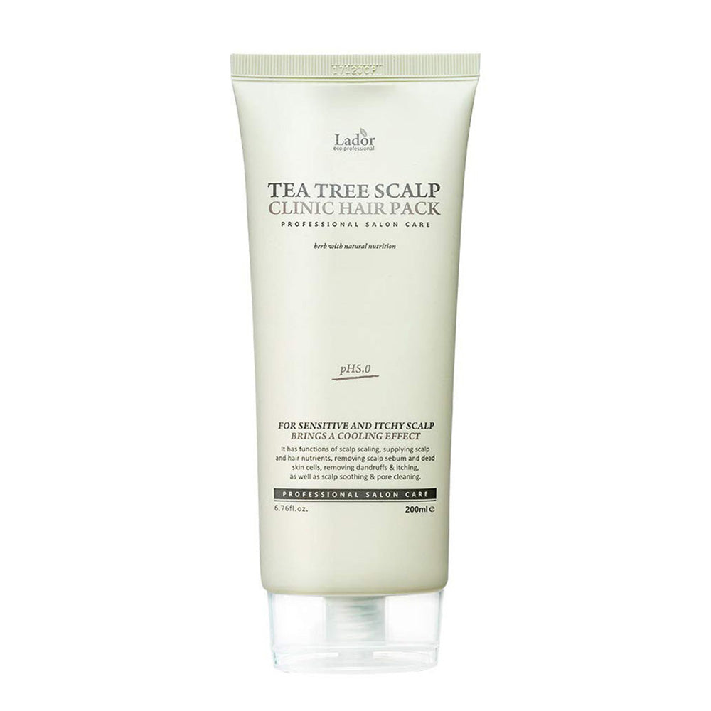 LADOR Tea Tree Scalp Clinic Hair Pack removes dead skin cells and soothes your scalp due to its natural ingredients like green tea and tea tree extract.