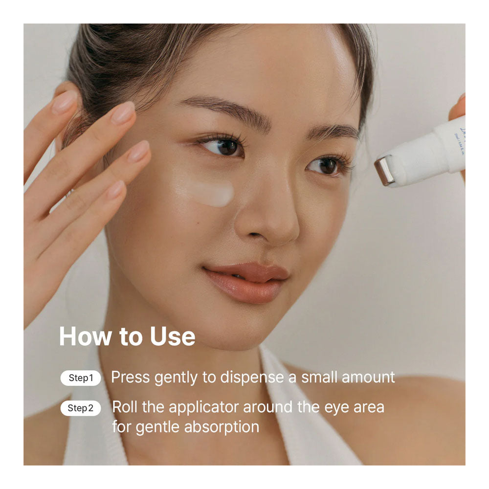 It features a built-in, hands-free gua sha roller applicator that gently glides for smooth, effective eye care, and is designed to enhance lifting effects without irritating the skin.
