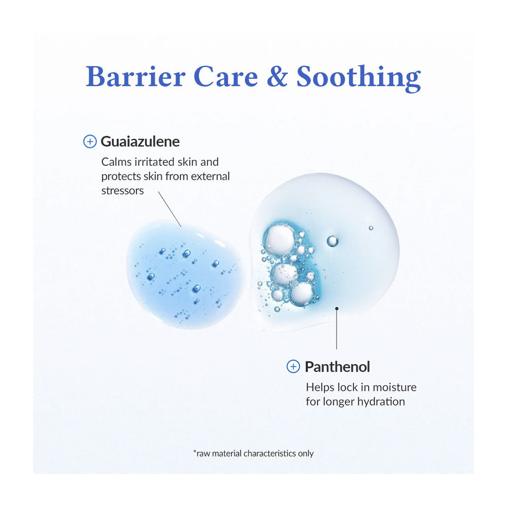 Fast-absorbing and non-sticky, it absorbs quickly and provides a glowy and dewy finish, as it delivers lasting hydration while supporting the skin barrier and calming the skin. It has a naturally derived blue color from its natural ingredient Guaiazulene.