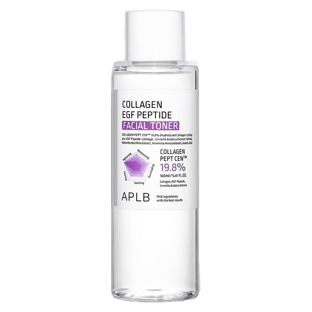 APLB Collagen EGF Peptide Facial Toner contains Collagen and EGF Peptide that revitalise dull skin and improve skin elasticity. It is also enriched with Centella Asiatica extract to soothe and moisturise irritated skin.