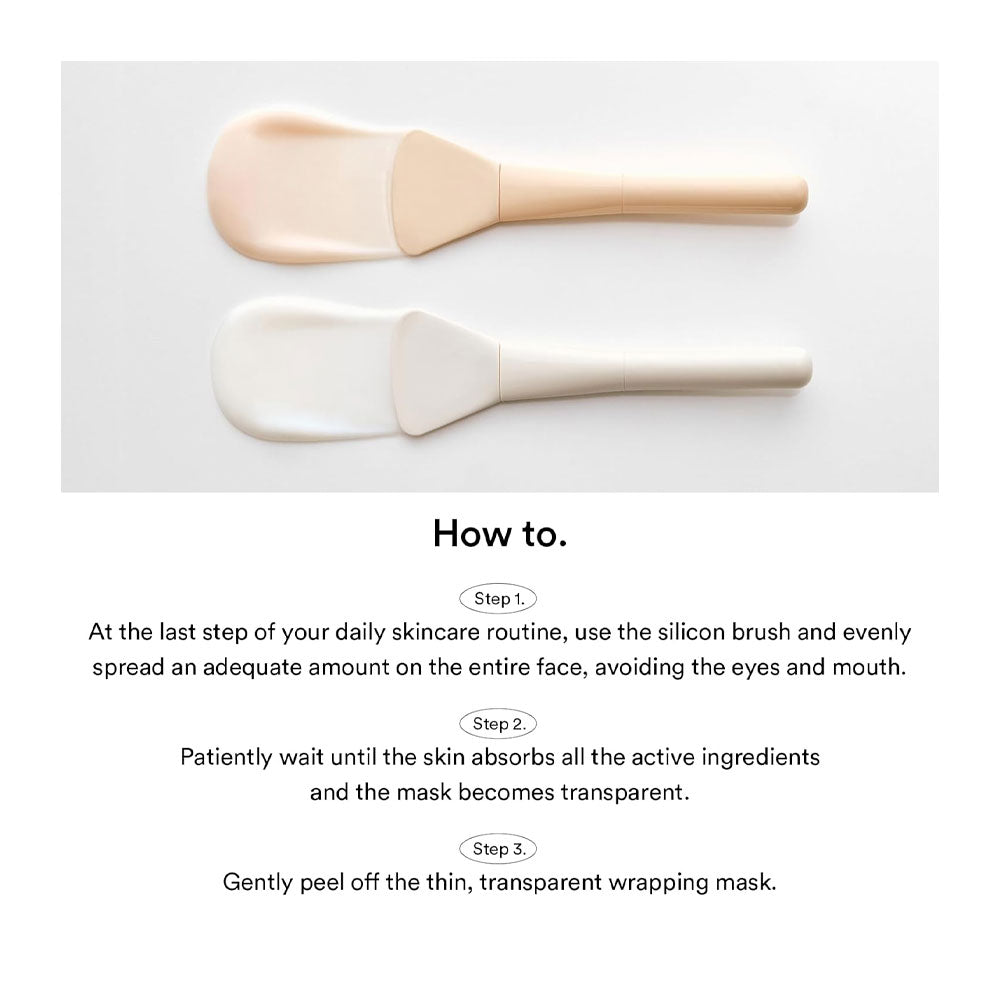 2. Use the included silicone brush and apply an appropriate amount evenly over the entire face, avoiding the eye area, eyebrows, and lips.