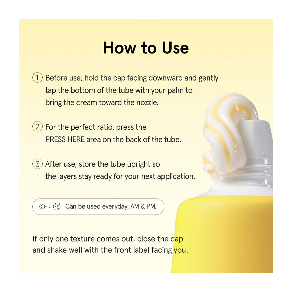 Formulated at a golden ratio for 2X toning care, its double-toning cream texture packed in a dual-structured packaging is designed to keep the two formulas separate, ensuring that the respective skin benefits of niacinamide and glutathione are effectively delivered to the skin: The niacinamide formula brightens the skin, while the glutathione formula clarifies and revitalises the skin.