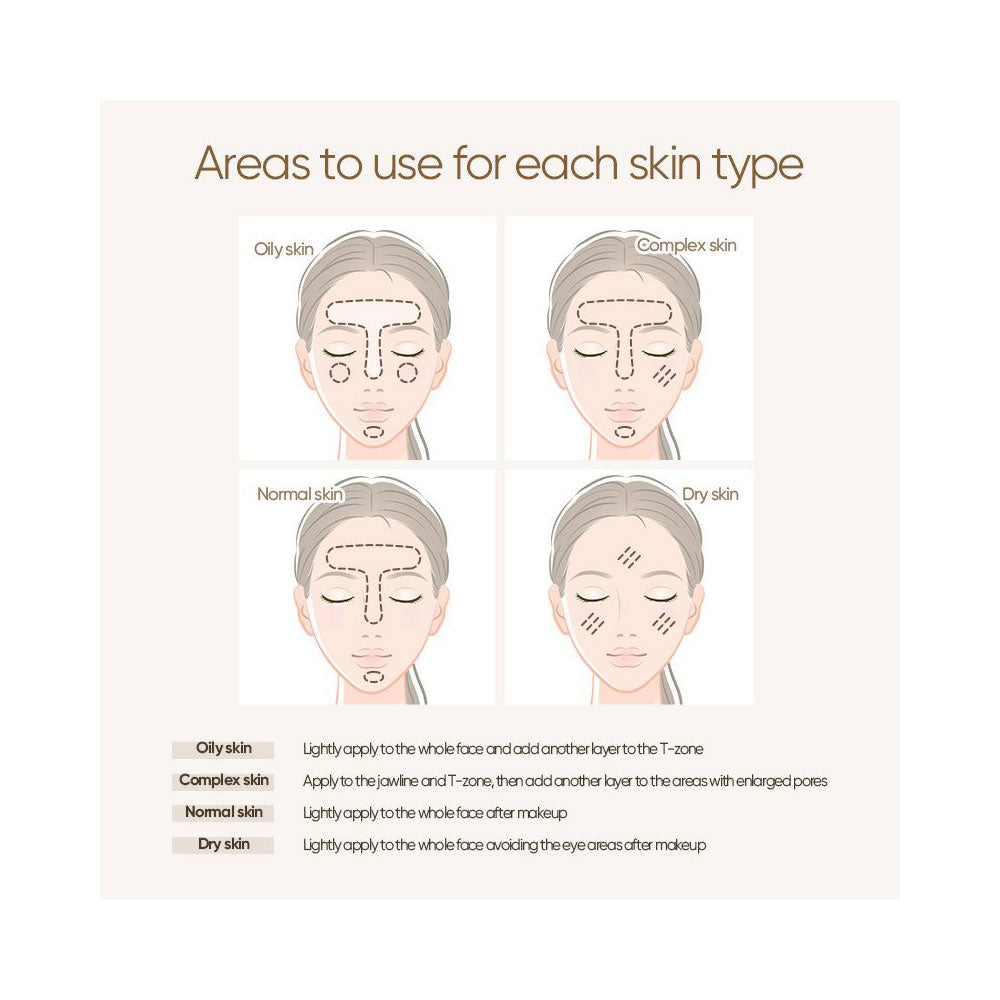 Formulated with more effective ingredients for a smooth, even complexion such as Sebum Cut Powder Complex that gives a matte, even finish without any discomfort, Oil Capture Powder that absorbs excess sebum, and Pore Fix Powder for pore-blurring effects.