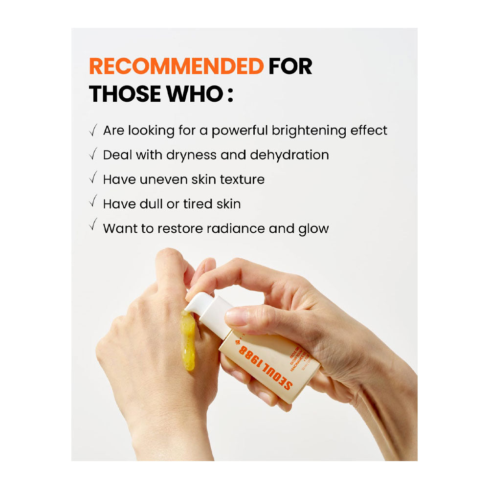 Formulated with 15% niacinamide and Yuja, KSECRET Seoul 1988 Glow: Niacinamide 15% + Yuja is a powerful brightening serum that helps fade dark spots and blemishes, and leaves your skin radiant and glowing.