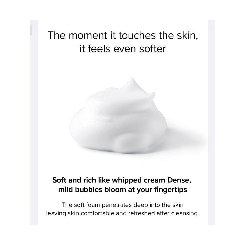 It has a rich, silky foam texture that gently cleanses and removes impurities from the skin without irritation.